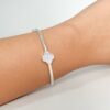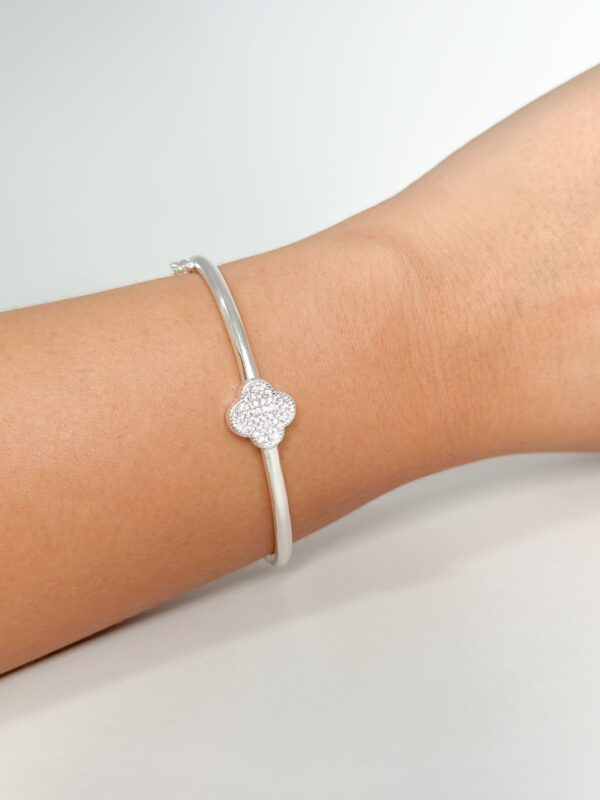 Bracelete trevo com zircônias transparentes banhado em prata.