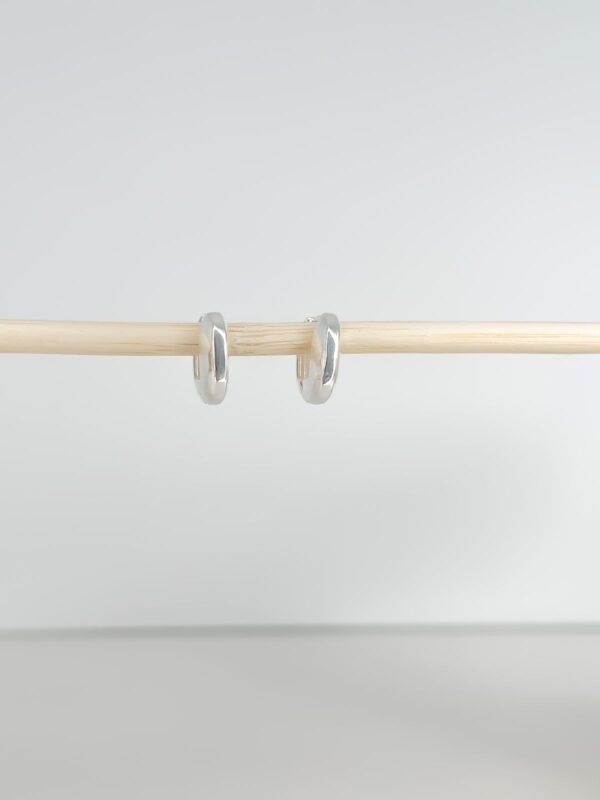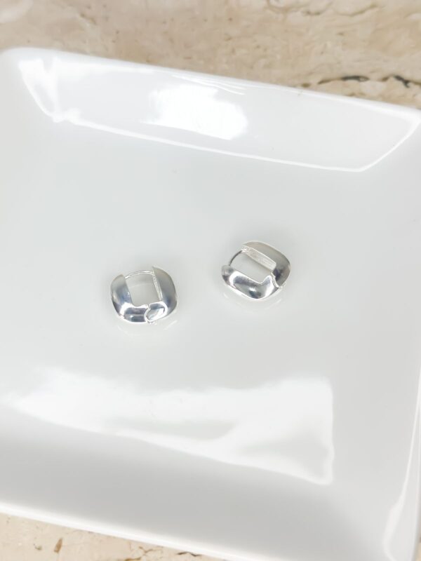 Brinco argola quadrada grossa pequena banhado em prata, fecho de clique.