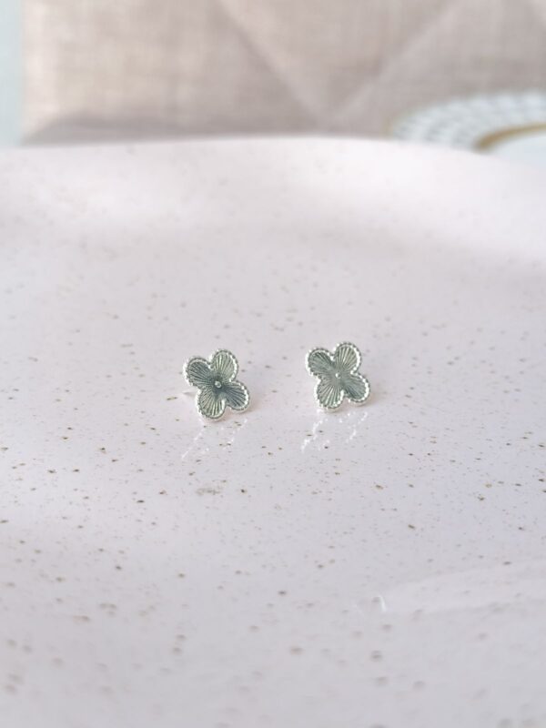 Brinco trevo banhado em prata, com fecho de tarraxa.