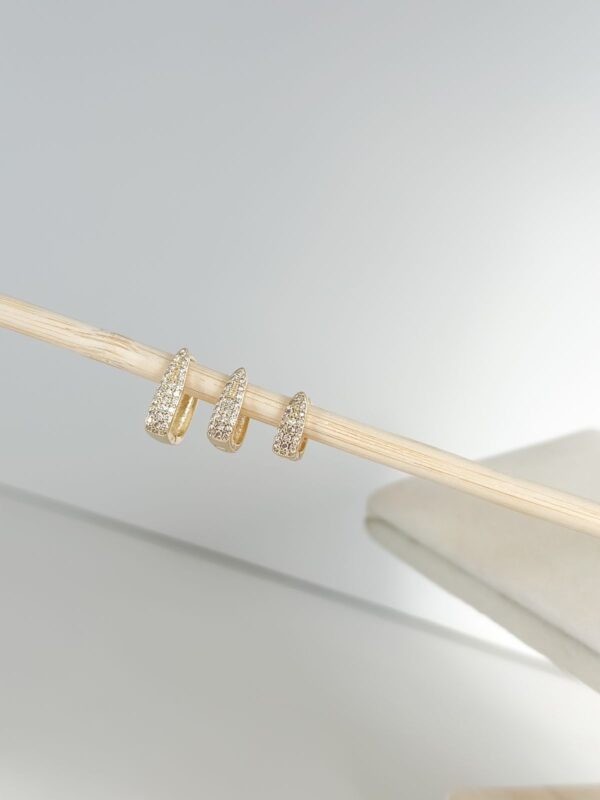 Trio argola dourado banhado em ouro 18, cravejado com zircônias transparentes.